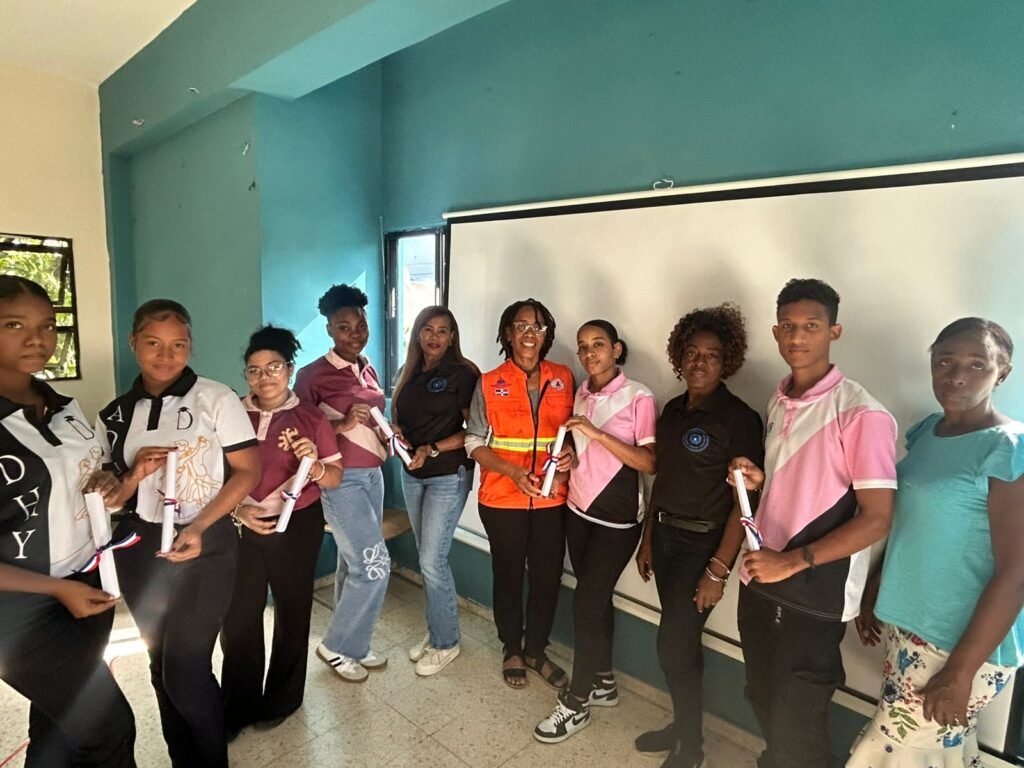La jornada contó además con el acompañamiento institucional de la directora ejecutiva de MIDECCOM, Rosaura Rosario, junto a María Dolores Suero, coordinadora de capacitación, y Rosa Ángela Fermín, secretaria de Finanzas, quienes respaldaron el desarrollo del programa y el seguimiento al proceso educativo de los jóvenes.